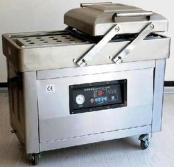 雙室真空包裝機不可以對有水、油和粉末狀的物品進行包裝,不然容易對極其造成破壞。在使用前要接通電源,開始電源的開關,等到指示燈亮,設置時間繼電器,調節抽氣,熱封的時間。調試的時候要注意抽真空時間由長調短,在運轉的時候要聽空泵有無異響,完成所有調試工作方可進循環運行生產作業。在進行包裝的時候,要將包裝袋壓條翻開,把裝入被包裝物品的包裝袋放入工作室內,需封口處平整地放于硅橡膠條上,袋子不要重疊,翻過包裝袋壓條將包裝袋口部壓好。最后完成工作后要關上電源和拔出電源的插頭。